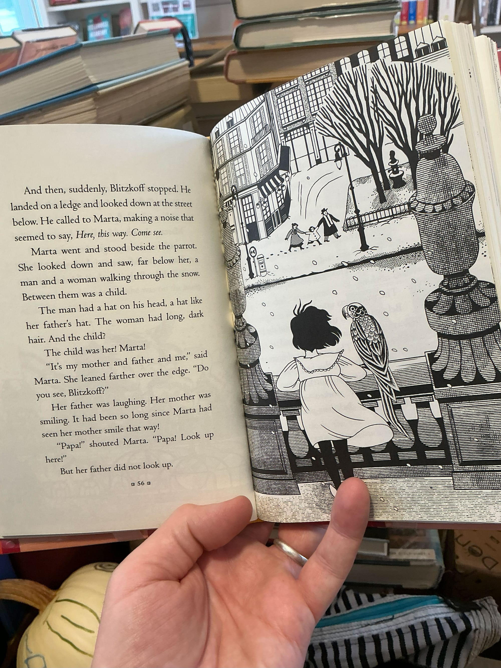 Fantastic short story about a hotel maid's daughter, Marta. When a mysterious Countess arrives and takes Marta in, an adventure in seven stories is told that leads to the solution of the mystery of her missing father, lost at war. Like The Puppets of Spellhorst, another timeless, awe-inspiring folk tale from DiCamillo, with incredible art deco line art by Julia Sarda.