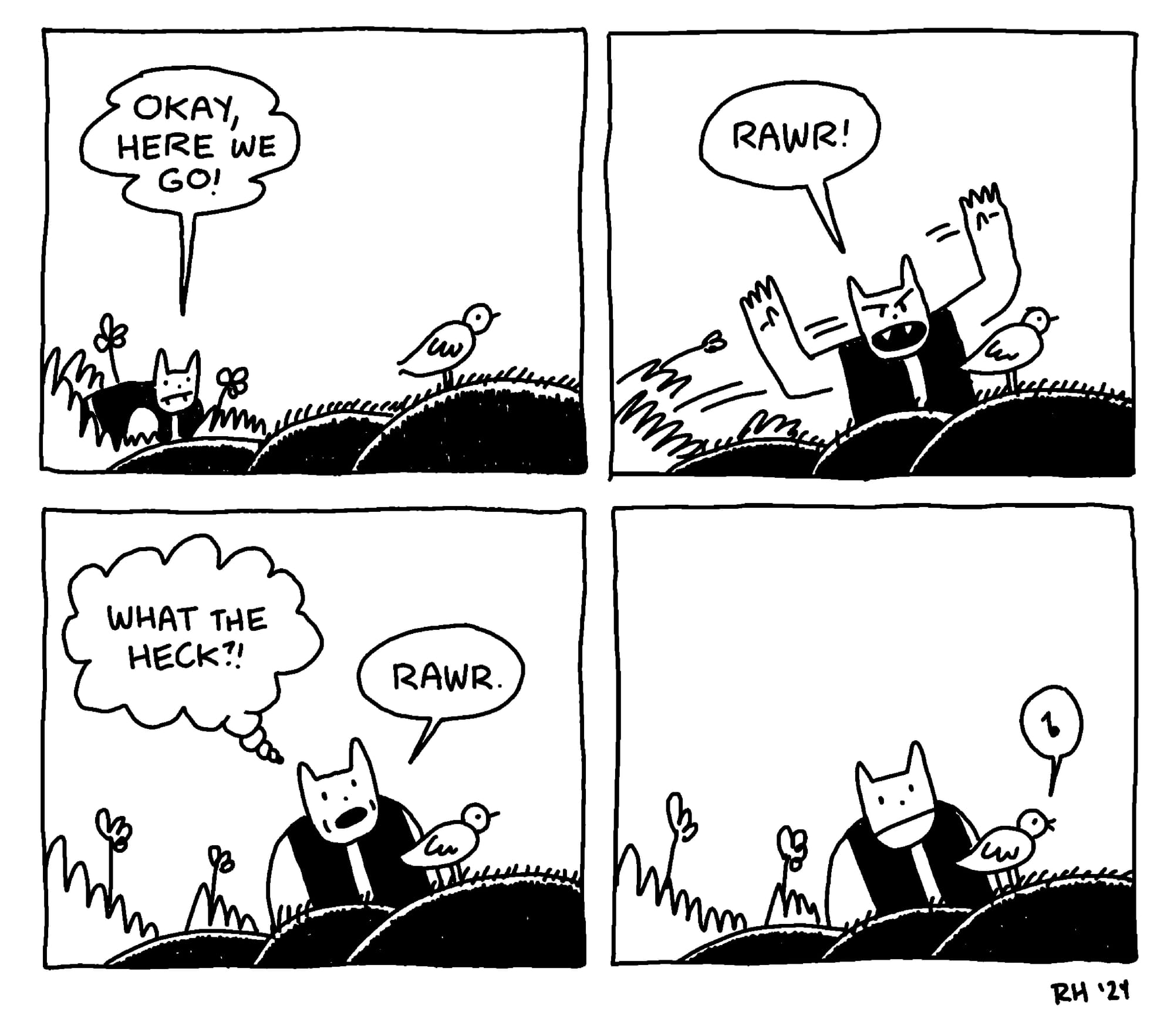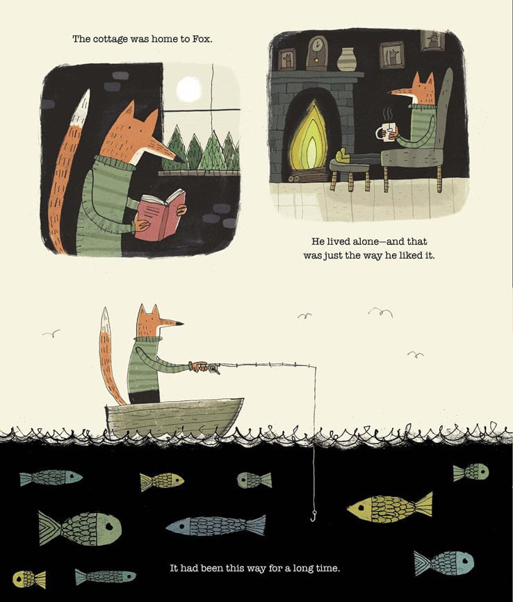 Here are three more pages of the comic followed by some recommendations of very artsy picture books about solitary creatures who begrudgingly come to realize that socialization is really important even though they have very comfortable routines. Pretty relatable!!