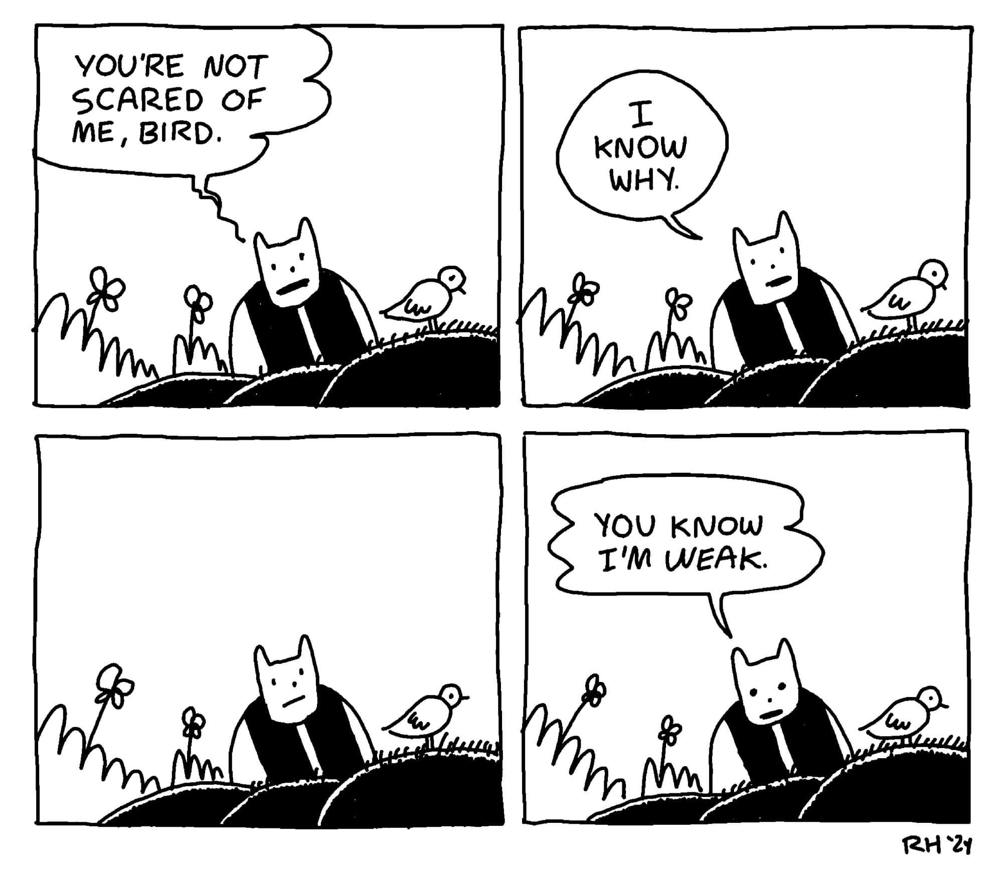 I'm a generally large human, but deep inside myself I feel like a very small person. I'm very timid and nervous and always just assume everyone around me is taller. this is all to say that I relate really hard with the titular character here.
